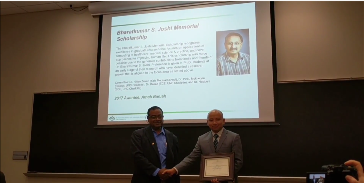'The Bharatkumar S. Joshi Scholarship' for 2017 scholarship was awarded to Mr. Arnab Baruah.