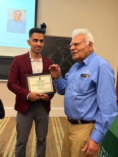 "Receiving this prestigious "Bharatkumar S. Joshi Memorial Scholarship" is a great honor, and I am deeply grateful for the opportunity to further my education and research related to Solar Powered UV LEDs for microbial disinfection applications. This scholarship will not only provide me the financial support but also serve as a strong source of motivation to achieve my academic goals and contribute to the field of my research. Thus, I want to sincerely thank the sponsor, friends, and family of Dr. Joshi and the scholarship review committee for choosing me and my research for this scholarship"